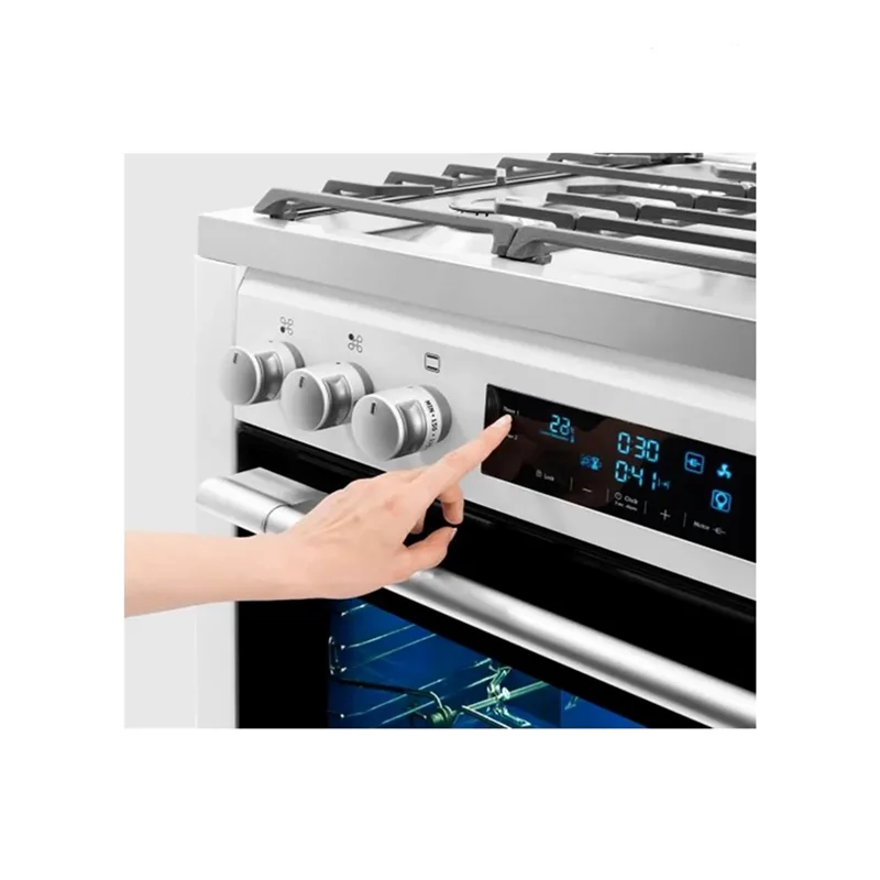 صفحه ی کنترل لمسی بزرگ : که برای دسترسی آسان به برنامه ها و تنظیمات محصول مورد استفاده قرار میگیرد که کنترل این اجاق گاز را بسیار ساده میکند. روشن و خاموش شدن چراغ، جوجهگردان، فن، المنت، زمانسنج و تنظیمات دو شلعه زمان دار از طریق این صفحه اجرا میشود.