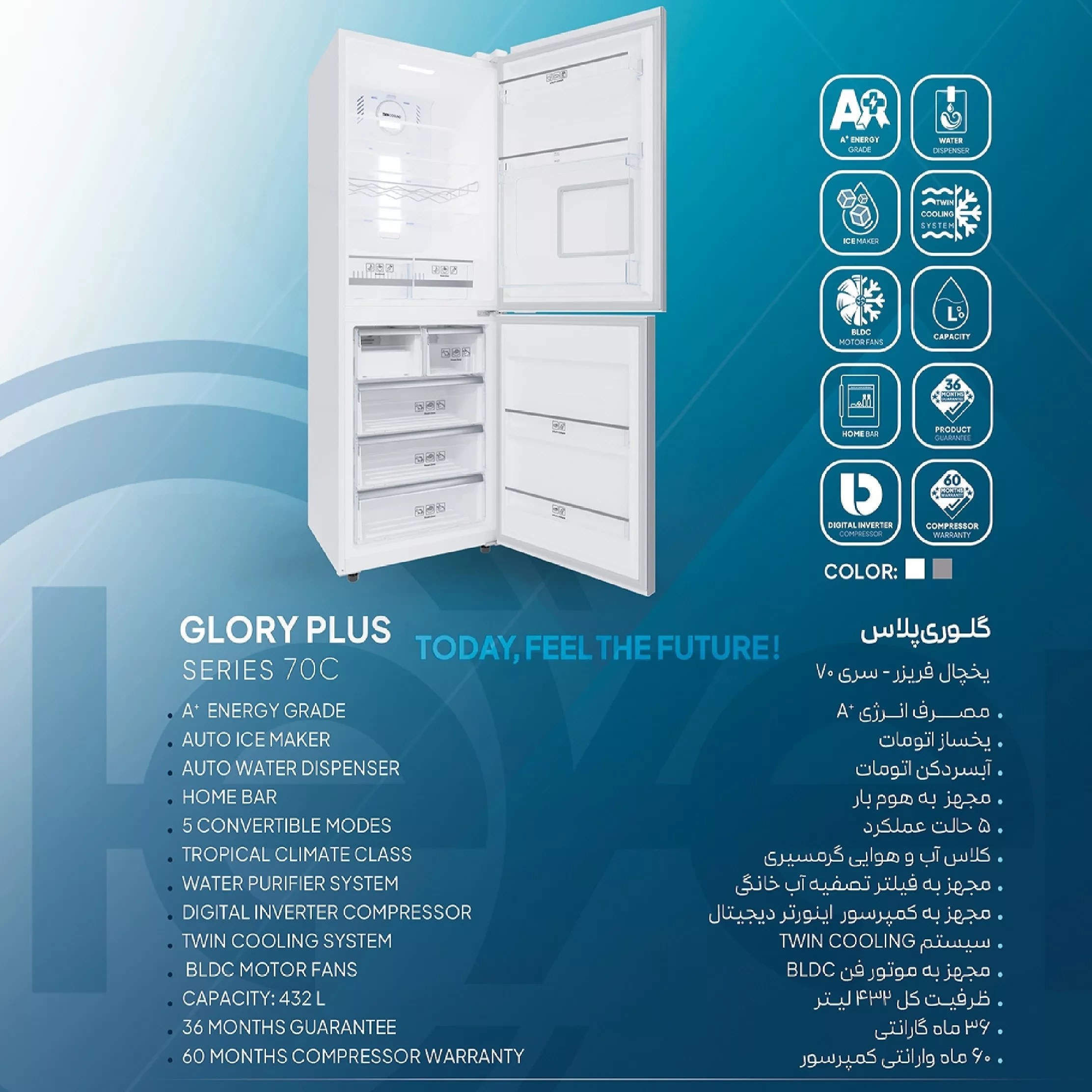 کمپانی معتبرکلور با تلاش های بسیار طراحان و مسئولان خود در حوزه یخچال فریزر، موفق شده تا یخچال فریزر کمبی کلور مدل گلوری پلاس را با قابلیت های بسیار منحصر به فرد به تولید رسانده و به بازار عرضه کند. قابلیت های این محصول بر اساس نیازها و خواسته های مصرف کنندگان طراحی شده است؛ به همین دلیل مورد توجه بسیاری از مصرف کنندگان قرار گرفته و جذابیت این محصول را دوچندان میکند.